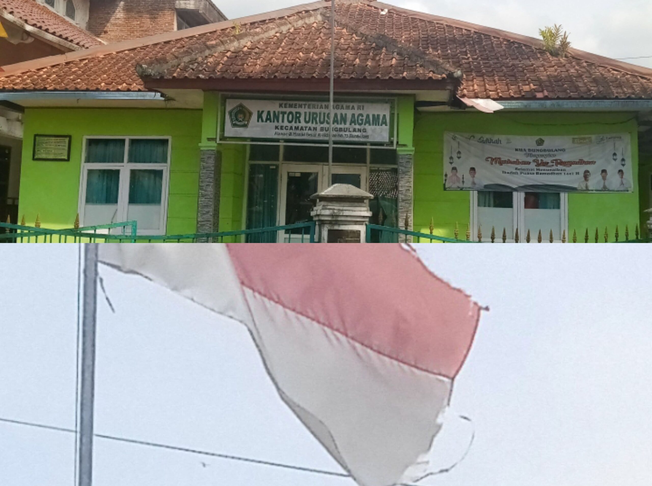 Garut, Faktanusantara.co.id – Kondisi memprihatinkan terlihat di depan Kantor KUA Kecamatan Bungbulang, Kabupaten Garut. Bendera Merah Putih yang terpasang di lokasi tersebut tampak dalam keadaan robek, kusam, dan memudar saat berkibar pada Minggu, 5 April 2026.