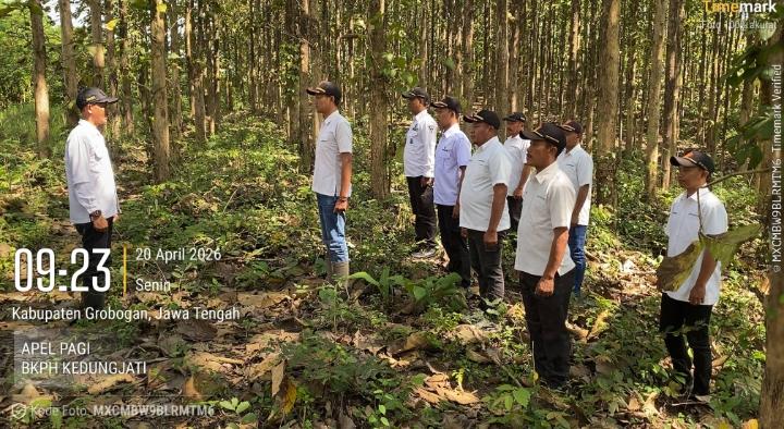 GROBOGAN, Faktanusantara.co.id// – Perum Perhutani KPH Semarang melalui BKPH Kedungjati menggelar apel pagi yang dirangkaikan dengan afirmasi Tata Nilai AKHLAK Semester I Tahun 2026.