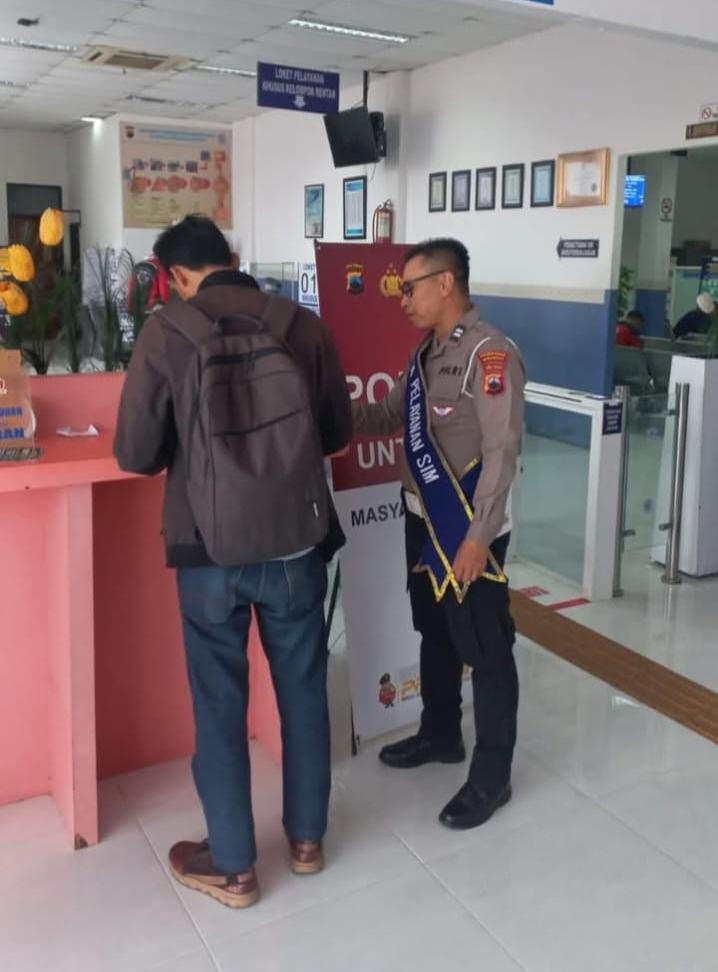 Polrestabes Semarang melalui program “Polantas Menyapa”. Kegiatan ini menghadirkan Duta Pelayanan SIM yang bertugas memberikan pendampingan langsung kepada masyarakat dalam mengisi formulir permohonan Surat Izin Mengemudi (SIM).