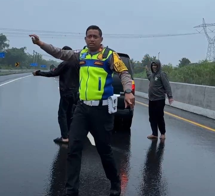 Bersama personel di lapangan, AKP Lingga membantu menepikan kendaraan ke bahu jalan agar tidak mengganggu arus lalu lintas serta menghindari potensi kecelakaan bagi pengguna jalan lainnya.
