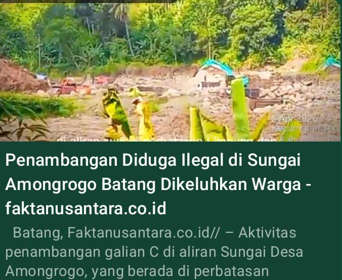 Menindaklanjuti pemberitaan yang telah beredar, media Faktanusantara.co.id telah melakukan upaya konfirmasi kepada Kapolres Batang melalui pesan WhatsApp.Sabtu (11/04/2026). Kapolres menyampaikan apresiasi atas informasi yang diberikan.